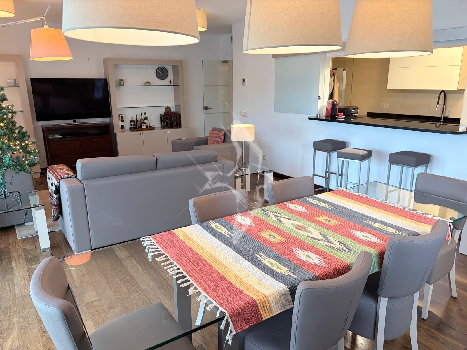Com 181,50 m² de área bruta de construção e excelente luminosidade, o apartamento é composto por: sala com varanda e cozinha integrada em open space, suite com closet; quarto adicional, casa de banho completa de apoio e dois lugares de garagem.